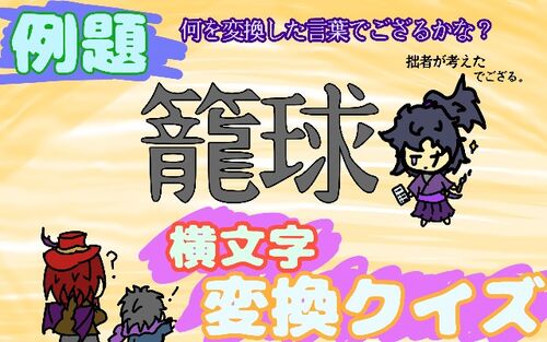 早速だがこの問答、解けるでござるかな? 籠球 さて、これは何の横文字を訳したものでござるかな?…………………………………………… 本日は拙者、和潤が日記を書くことに致す。※この日記の問答は白文字で回答に繋がる鍵を示唆する。 (この記事に出題されるクイズのヒント(…